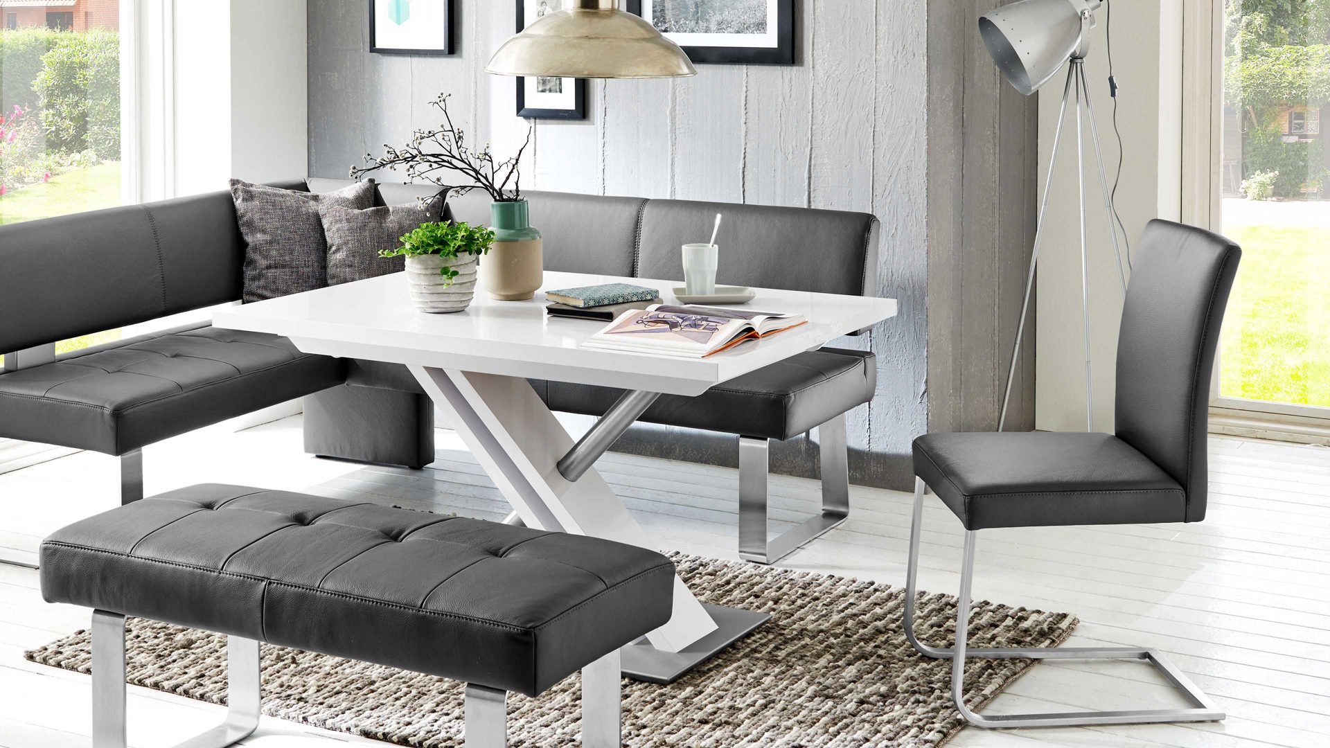 Nutzen Sie zur individuellen Gestaltung Ihrer Essecke den Typenplan, der Ihnen eine große Auswahl an Bezügen bietet. Aus der gleichen Serie sind weitere stilvolle Sitzmöbel erhältlich.
