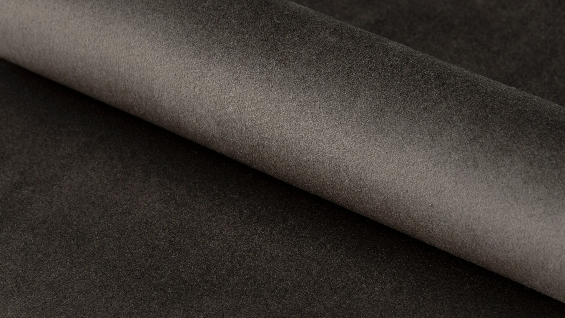 Auch farblich erlaubt der Loungesessel angenehme Freiheit beim Kombinieren: Dafür sorgt der graubraune Samtbezug. Der weiche Stoff umhüllt sowohl die Sitzfläche als auch die gesteppte Rückenlehne inklusive der bequemen Armlehnen herrlich soft. Das rau pulverbeschichtete Metallgestell fließt in sattem Schwarz stimmig in das Gesamtbild ein.