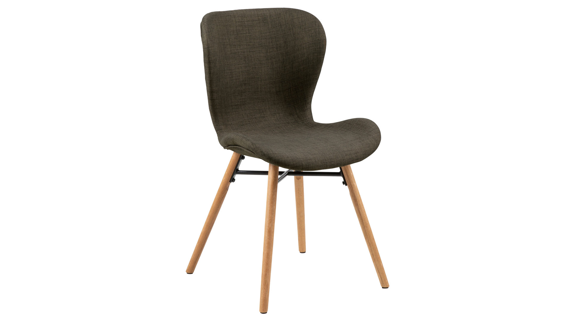 Der Vierfußstuhl verbindet schlicht-moderne Eleganz mit ausgewählten natürlich-warmen Details. Vier geölte Eichenholzfüße bilden die stabilisierende Basis - sie strahlen einladende Gemütlichkeit aus. Das schwarz lackierte Metallkreuz, das die Füße robust zusammenhält, sorgt für einen attraktiven Hell-Dunkel-Kontrast und setzt damit einen herrlichen Akzent. Bezogen ist der hochwertig verarbeitete Stuhl mit Flachgewebe in schicker Khakifarbe. Ein weiteres visuelles Highlight ist die umlaufende Ziernaht.
