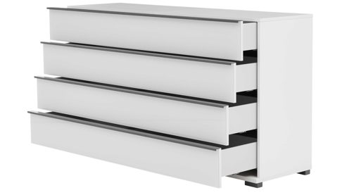 Mit Maßen von ca. 149 x 82 x 42 cm (B/LxHxT) und der durchdachten Aufteilung bietet die Schubladenkommode viel Stauraum, ohne zu viel Platz zu beanspruchen. Die vier großzügigen Auszüge sind mit Vollauszug und Softclose-Funktion ausgestattet – für sanftes, leises Schließen im täglichen Gebrauch. Besonders praktisch: Die Kommode wird fertig montiert geliefert und ist sofort einsatzbereit.