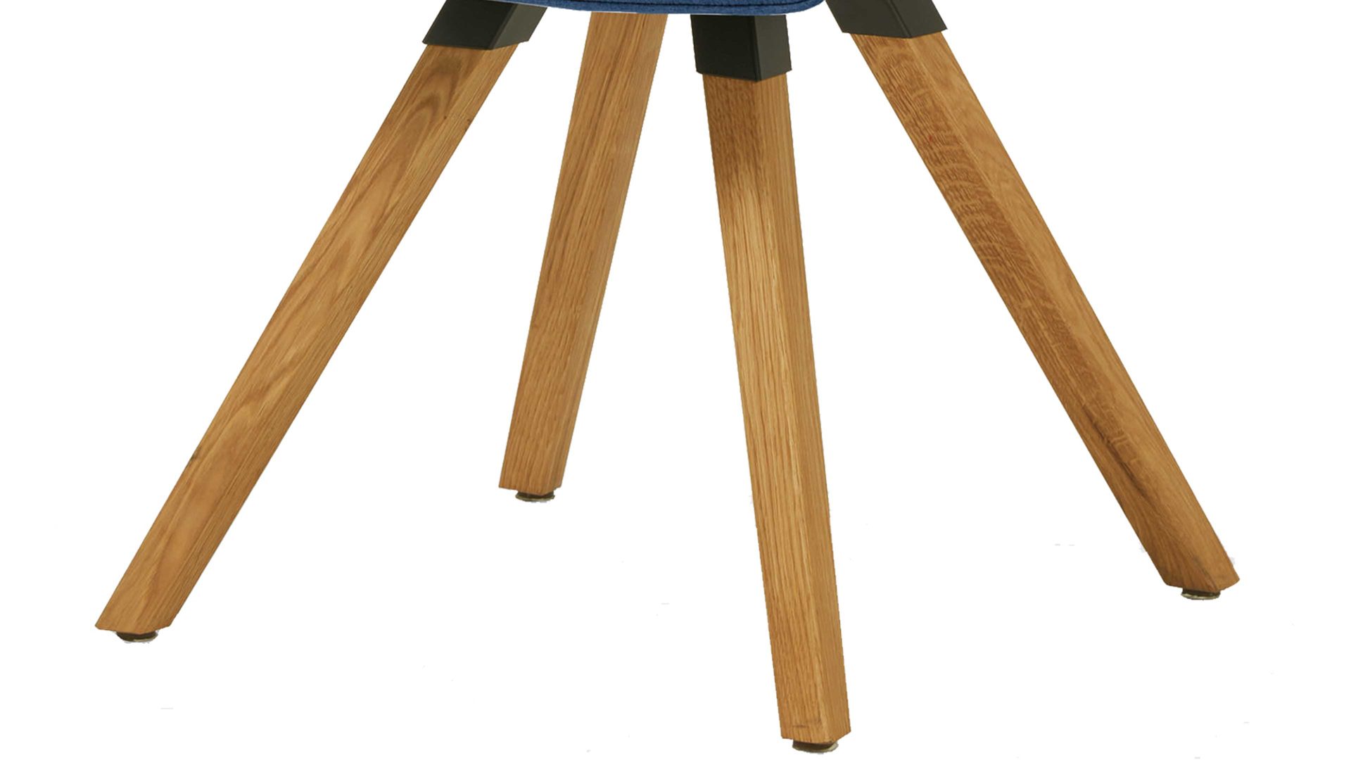 Der Armlehnstuhl Merlot präsentiert sich modern, kreativ und stilvoll designt. Er kombiniert einen blauen Webstoffbezug mit einem Stativ-Gestell aus massivem Wildeichenholz und schwarzen Akzenten. Das Echtholz sorgt für eine stabile Basis sowie für natürliches und warmes Flair im Esszimmer. Einen kühlen Kontrast erwirkt der tief-elegante Farbton des hochwertigen, angenehm weichen Stoffbezugs. Überdies unterstreicht die spezielle Formensprache des Gestells die originelle Ausstrahlung des Vierfußstuhls.