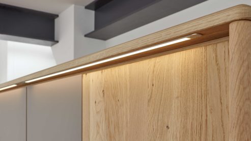 Mattglasfronten sowie weitere dargestellte Einrichtungsgegenstände sind separat gegen Mehrpreis bestellbar.