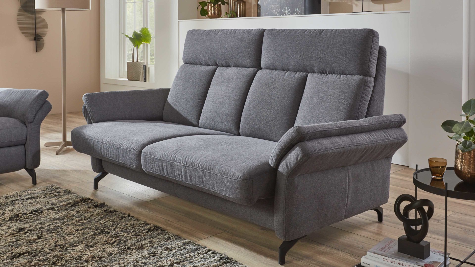 Der Zweisitzer mit Vorziehfunktion aus dem hochwertigen Polsterprogramm OrthoSedis 4.0 kombiniert einen edlen anthrazitfarbenen Stoffbezug mit mattschwarz lackierten Metallfüßen. Sowohl die Materialien als auch die Farben harmonieren perfekt und verleihen dem Sofa eine moderne und elegante Ausstrahlung. Durch das zeitlose Design fügt sich die Couch in verschiedene Einrichtungsstile passend ein.