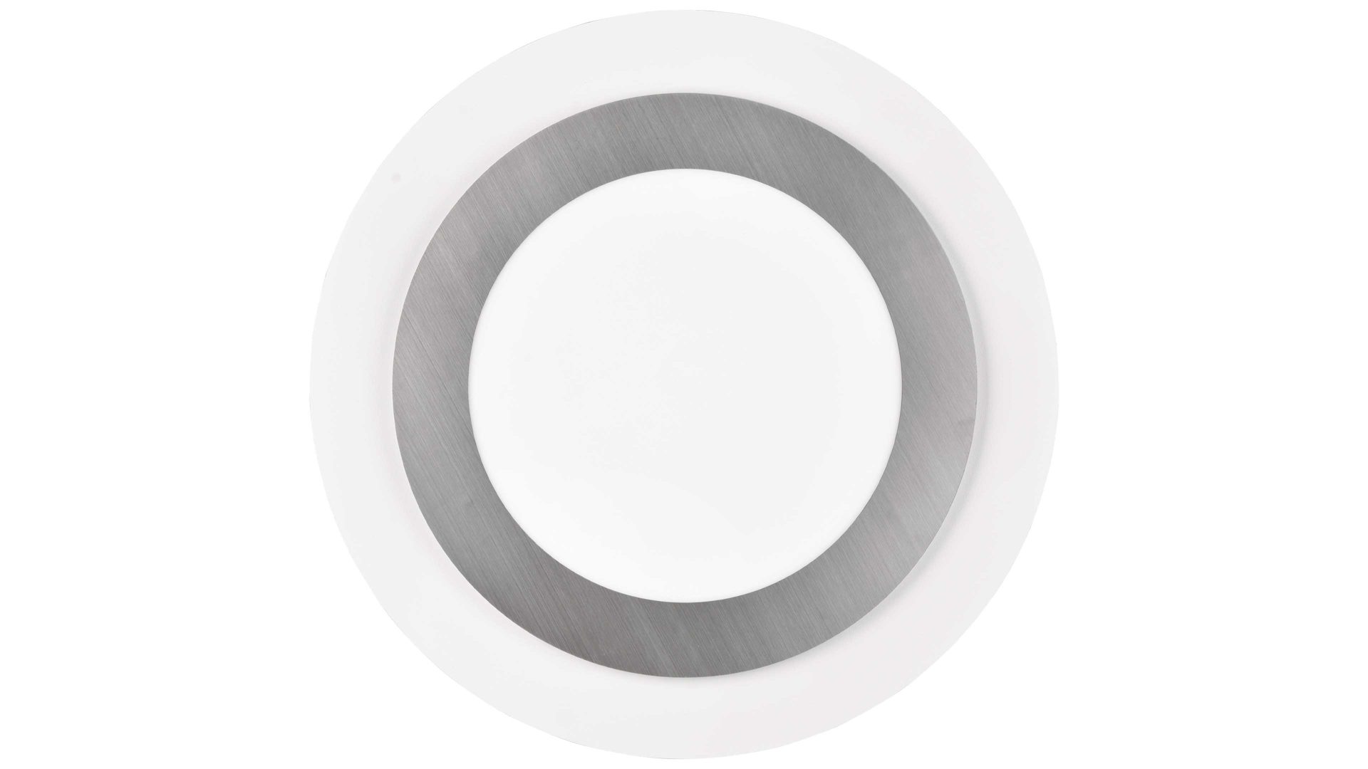matt nickelfarbenes Metall, kombiniert mit mattweißen Leuchtmittelabdeckungen