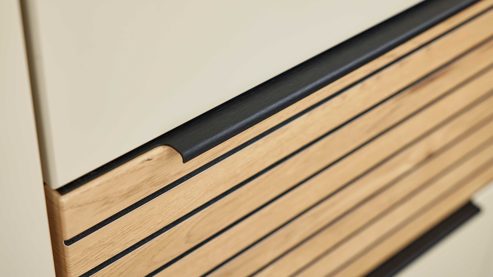 | Farbhinweis: | Sandbeige Risseiche Schwarz (Griffe und Füße) | |