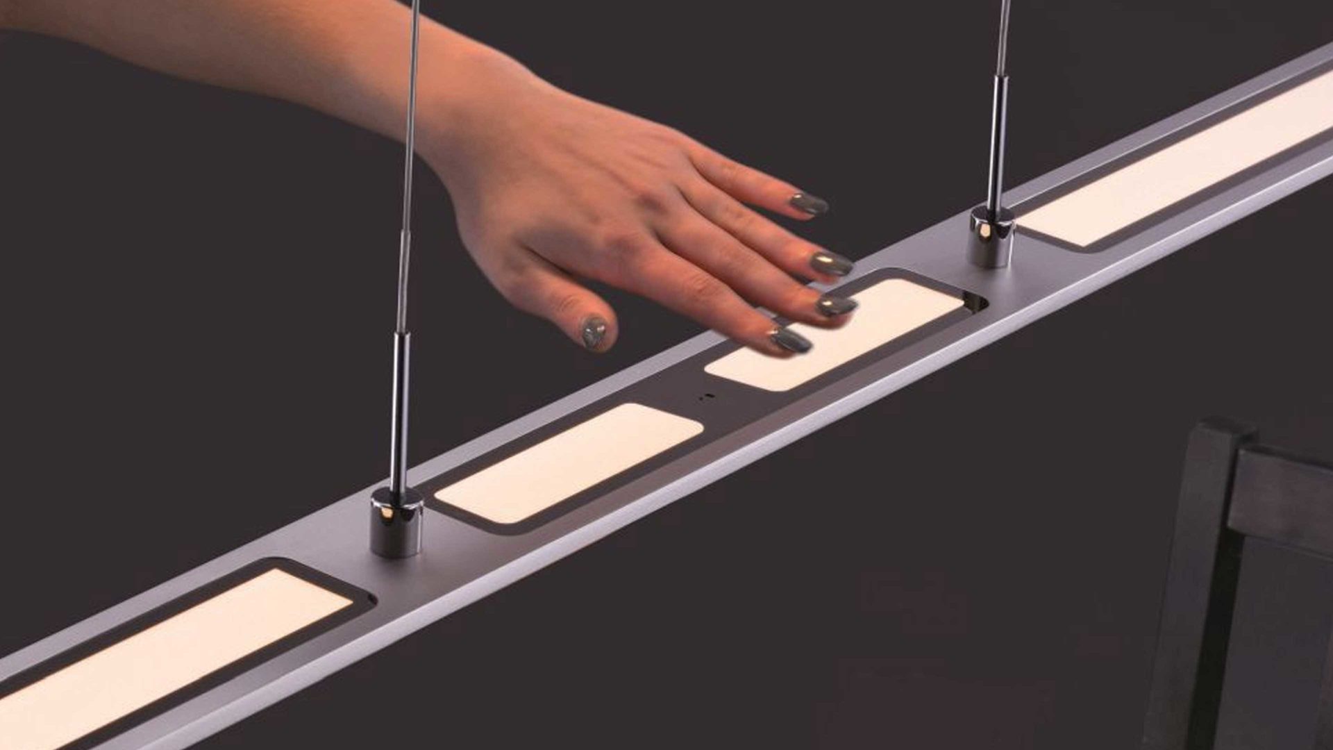 Denn ein Sensor für eine dreistufige CCT-Steuerung von 2700 über 4000 bis 5000 Kelvin ist ebenso inklusive wie ein stufenloser Dimmer. Darüber hinaus ist die Hängeleuchte, die eine Länge von ca. 100 cm und eine Tiefe von ca. 7 cm hat, höhenverstellbar von ca. 80 – 160 cm. Das benötigte Leuchtmittel, bei dem es sich um eine LED mit 35 Watt und 2500 Lumen handelt, ist bereits enthalten und hat die Energieeffizienzklasse F (Spektrum A bis G).