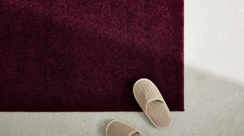 Hergestellt aus beerefarbener Kunstfaser, strahlt der ca. 60 x 90 cm (BxL) große Duschvorleger moderne Eleganz mit einer noblen Note aus, die dem Badezimmer das gewisse Etwas verleiht.