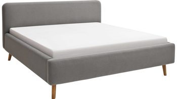 Mit den eichefarbenen Holzfüßen und dem hellgrauen Flachgewebebezug bringt das Polsterbettgestell Mattis modernes Flair in Ihr Schlafzimmer.