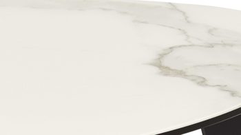Der AKANTE Beistelltisch Galet begeistert mit seiner außergewöhnlich eleganten Optik. Er kombiniert ein stilvolles und standfestes Dreifußgestell aus mattschwarz lackiertem Edelstahl mit einer Tischplatte aus hochwertiger Keramik in mattweißer Marmor-Nachbildung. Diese Farbgebung sowie die Formensprache verleihen dem Wohnzimmertisch eine extravagante Ausstrahlung.