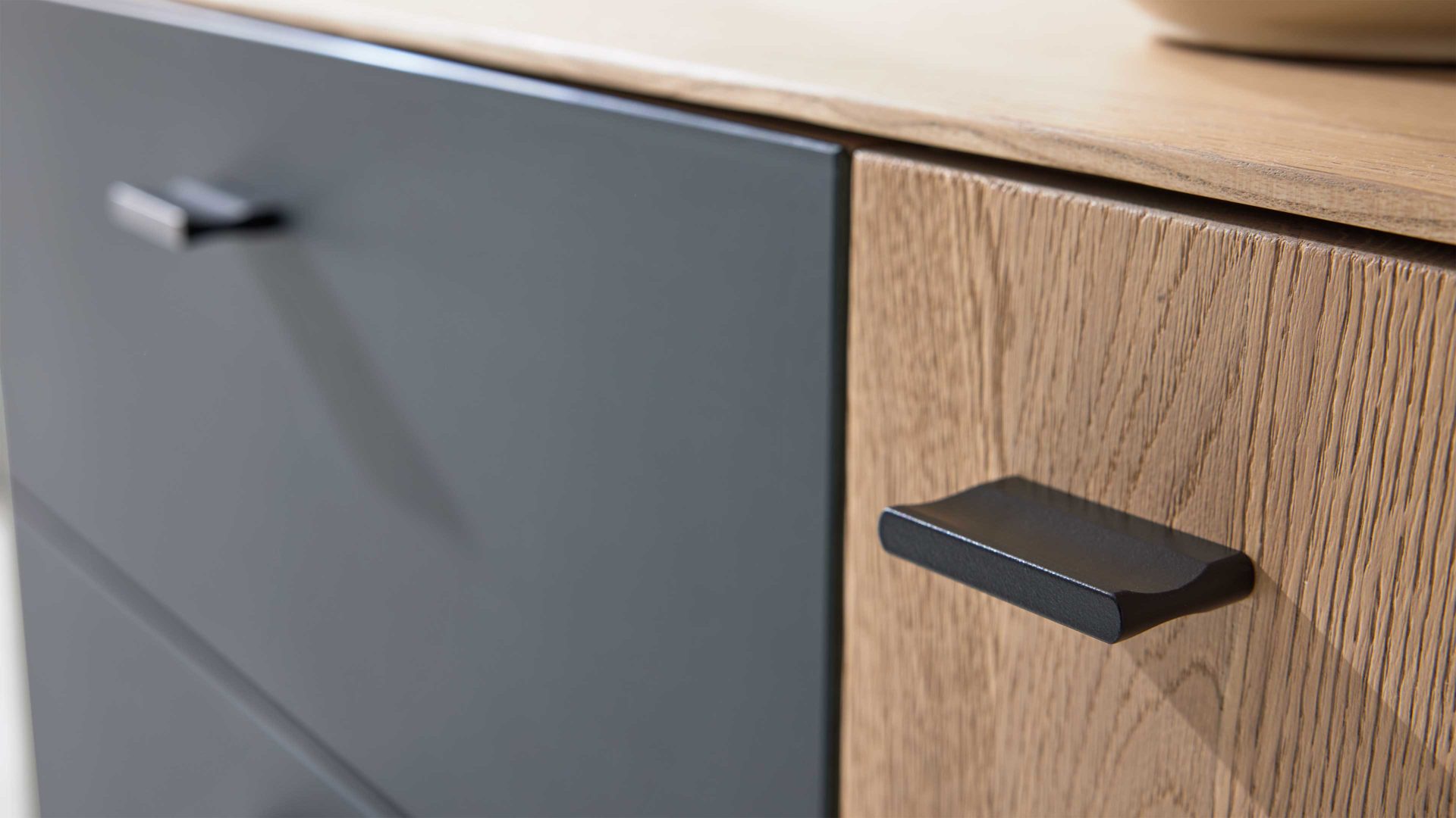 Das Sideboard (20) aus der Interliving Wohnzimmer Serie 2025 kombiniert massive Wildeiche-Fronten mit einem Korpus in Wildeiche-Nachbildung und bringt damit Wärme und Natürlichkeit in dein Zuhause. Besondere Akzente setzen die Rückwände aus echtem Kork, Parsolglas in satinmattem Anthrazit und anthrazitfarbene Metallgriffe mit feinstrukturierter Lackierung. Diese Details verleihen dem Möbelstück eine elegante, zeitgemäße Note und machen es zum echten Hingucker.