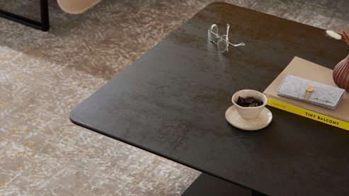 Die hochwertige Keramikoberfläche besticht nicht nur durch ihre edle Optik, sondern ist auch pflegeleicht, kratzfest und hitzebeständig – ideal für den täglichen Gebrauch. Das solide Stahlgestell sorgt für einen stabilen Stand, während dezente Rollen eine einfache Bewegung im Raum ermöglichen. So bleibt der Tisch immer flexibel, ohne an Eleganz zu verlieren.