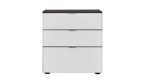 Zur Nachtkonsole gehören drei Schubladen - davon eine größere unten und zwei kleinere oben. Darin können Sie verschiedene Gegenstände, die Sie in Bettnähe licht- und staubgeschützt aufbewahren wollen, bequem unterbringen - beispielsweise Ihre Lesebrille. Der Softeinzug sorgt dafür, dass sich die Schubkästen leichtgängig und vor allem geräuscharm schließen lassen. Mit dem Oberboden verfügen Sie über eine zusätzliche Ablagefläche, auf der etwa das Buch Platz findet, das Sie jeweils gerade lesen. Die Maße der erstklassig verarbeiteten Schubladenkommode belaufen sich auf ca. 58 x 53 x 40 cm (BxHxT).