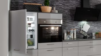 Im Lieferumfang der Systemküche sind außerdem diese IGNIS Einbaugeräte enthalten: der Kühlschrank ARL9VS2E mit der Energieeffizienzklasse E (Spektrum A bis G) und der autarke Backofen AKB20102IX mit der Energieeffizienzklasse A (Spektrum A+++ bis D).