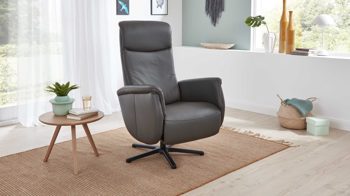 Das praktische Highlight des edlen Ledersessels bildet die manuelle Relaxfunktion: Indem Sie leichten Körperdruck anwenden, senkt sich der Rücken. Dabei geht der Sitz automatisch nach vorne und oben. Gleichzeitig fährt auch die Beinauflage nach oben, bis die Relaxposition erreicht ist.