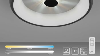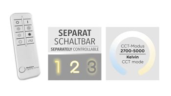| Verstellbarkeit und Funktion: | dimmbar Farbwechselfunktion Memoryfunktion Funk-Fernbedienung | |