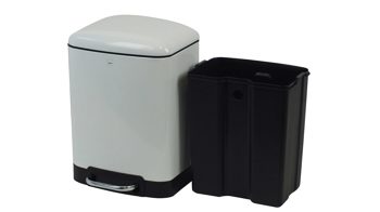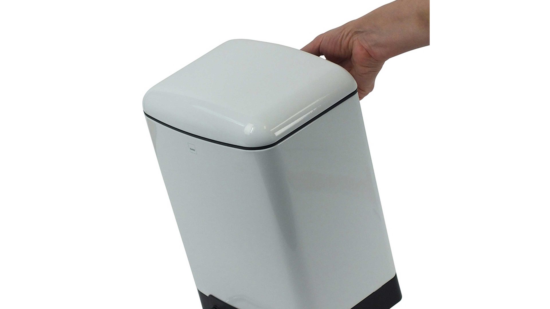 kela Treteimer Davino | mattweiß pulverbeschichteter Stahl | Silent-Close-System – leise schließender Deckel | arretierbarer Deckel | leicht entnehmbarer schwarzer Kunststoff-Innenbehälter | Fassungsvermögen ca. 12 Liter | Maße ca. 27 x 40 x 23 cm (BxHxT) | verschiedene Farben bestellbar | auch als Kosmetikeimer erhältlich