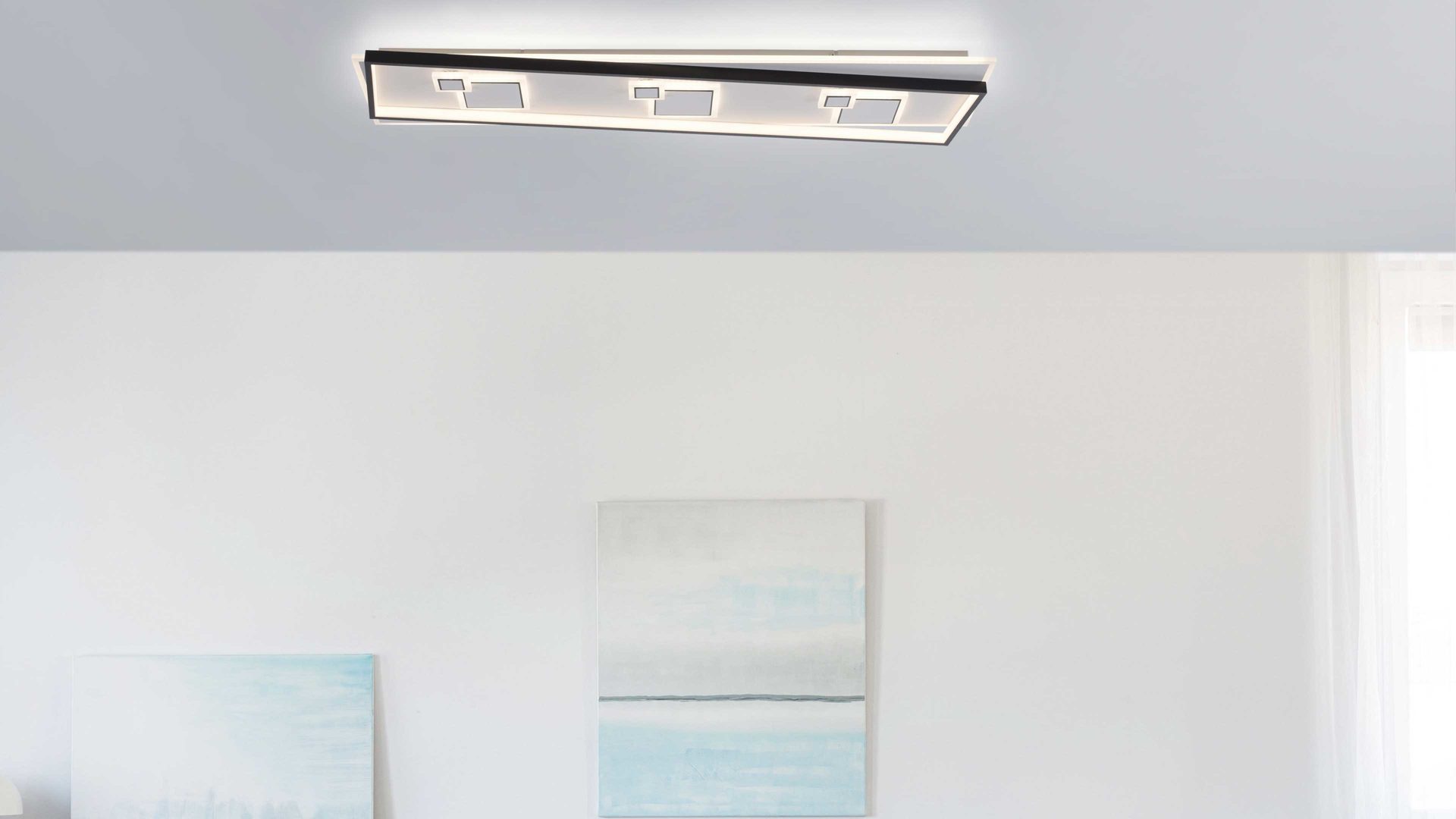 mattweißes Metall, kombiniert mit mattschwarzem Metall und weißen Acryl-Leuchtmittelabdeckungen