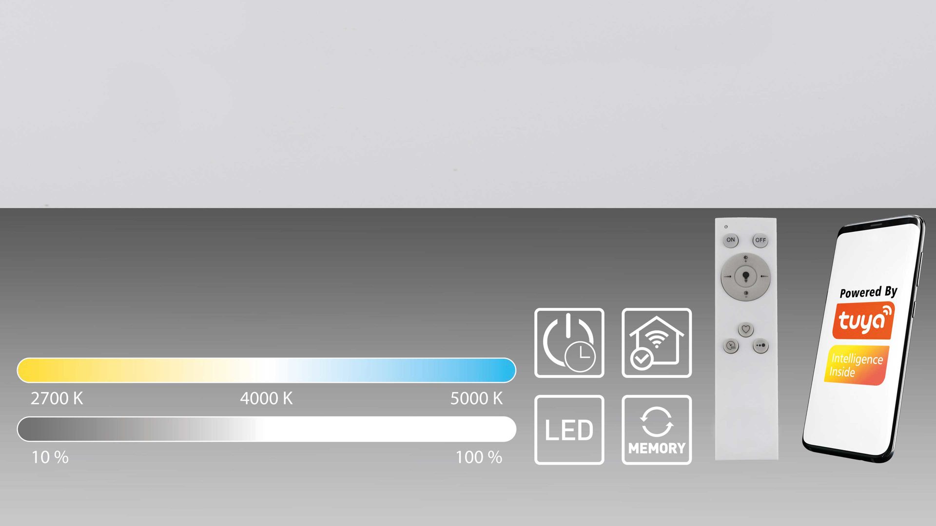 stufenlos dimmbar per Infrarot-Fernbedienung oder tuya-App