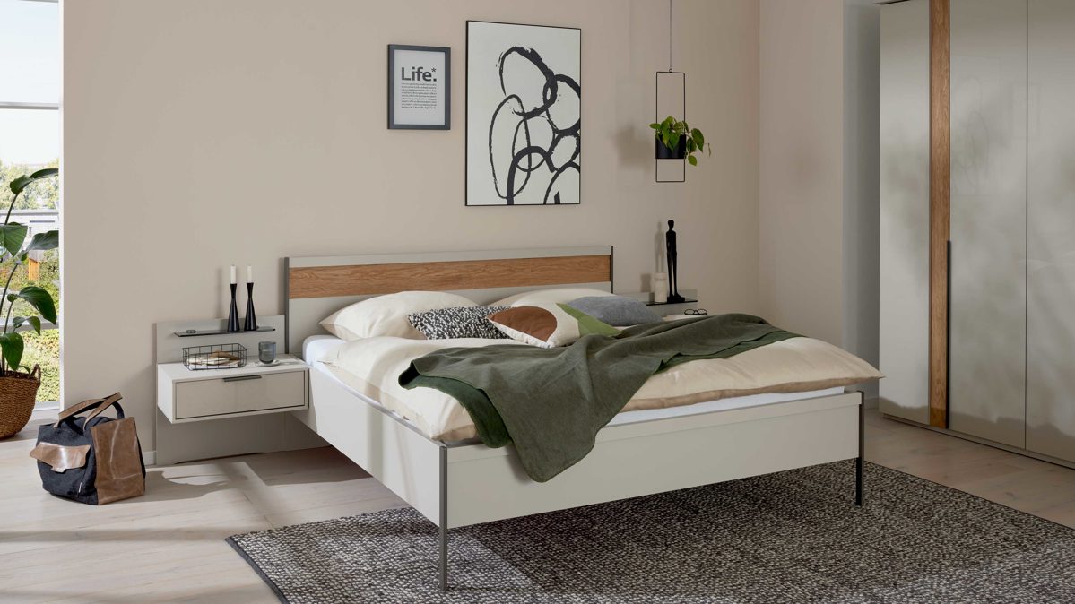 Auch die Bettgestelle sind in unterschiedlichen Größen von 140 bis 200 cm Breite sowie in verschiedenen Längenvarianten erhältlich. Passende Nachtschränke und Beimöbel ermöglichen dir eine perfekt abgestimmte Schlafzimmergestaltung. Optional sind außerdem stimmungsvolle Beleuchtungslösungen erhältlich.