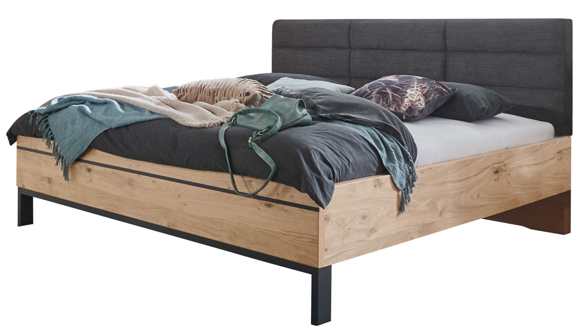 Alternativ ist die Schlafzimmerserie auch in Lack Basalt mit Echtholz Balkeneiche erhältlich. Sie können also das Design wählen, das am besten zu Ihrem Geschmack und Ihrem Schlafzimmer passt.