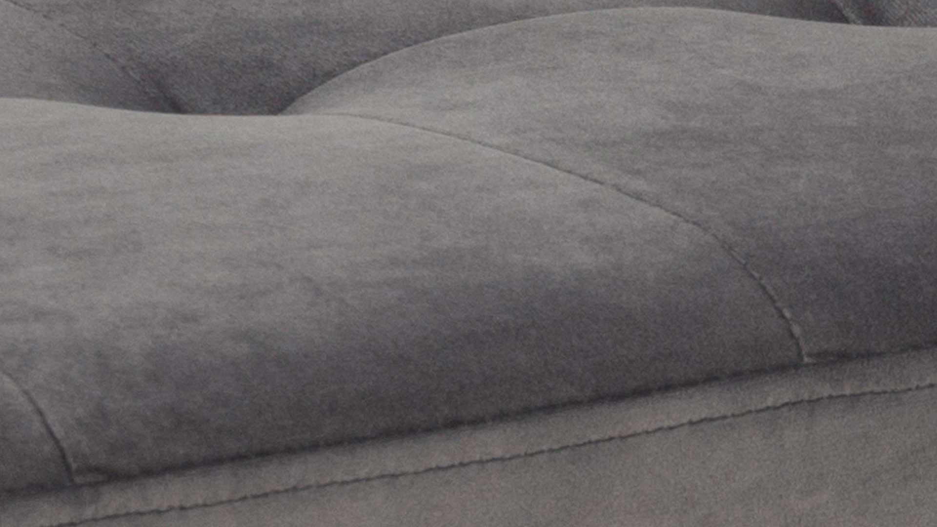 Die Polsterbank Glory begeistert mit ihrem edlen, modernen Design und bietet dazu hohen Komfort. Mattschwarze, rau pulverbeschichtete Metallfüße sorgen für die nötige Standfestigkeit. Das optische Highlight der Bank ist der klassisch-graue Samtbezug, der zum einen Extravaganz und zum anderen Gemütlichkeit ausstrahlt. Einen gelungenen Akzent setzt überdies die Rautenheftung der Sitzfläche.