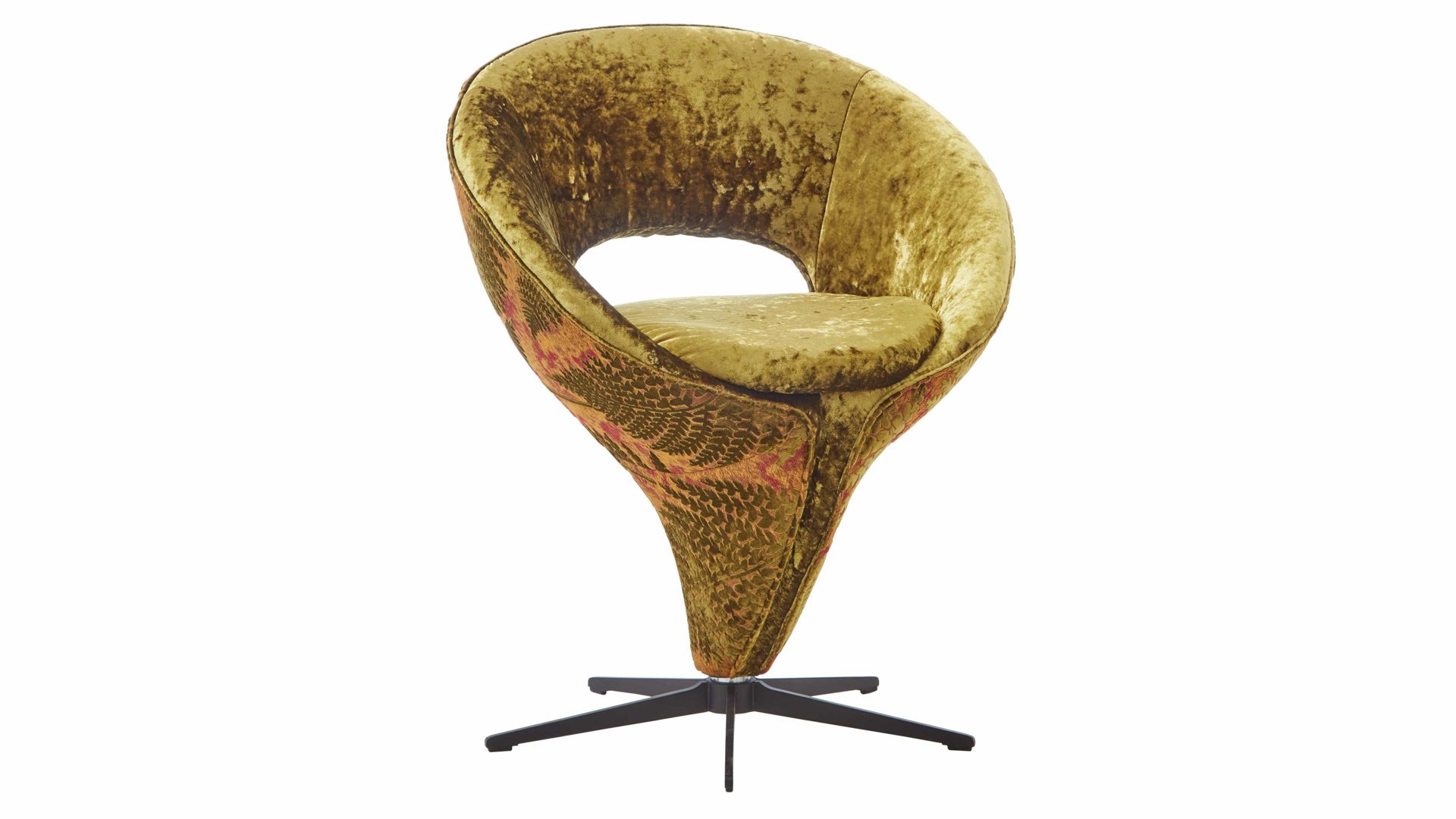 außen floral gemusterter Samtbezug mit grafisch-zweidimensionalen Farnmotiven