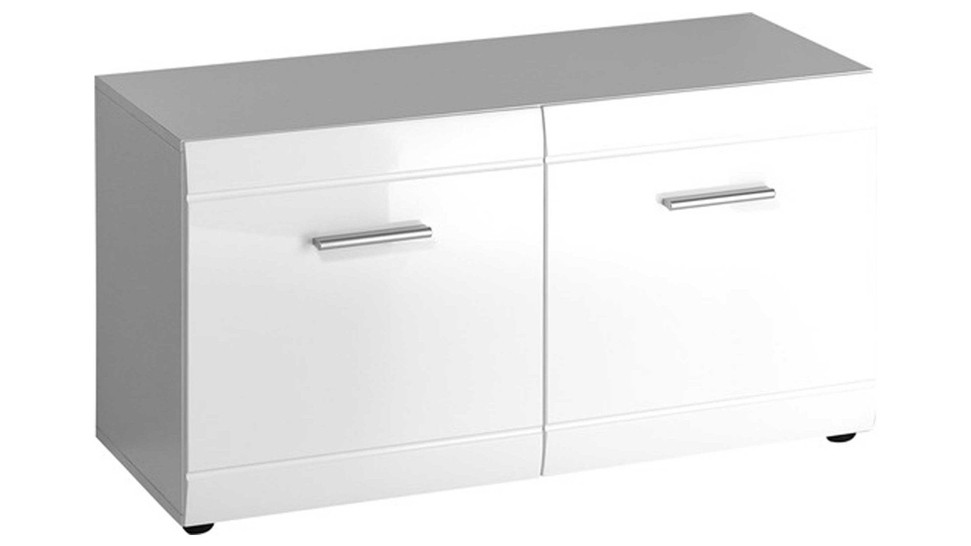 Die weiße Hochglanz-Schuhbank aus der Serie Adana überzeugt mit viel Platz für ihre Schuhe. Hinter den beiden Türen dieses Garderobenmöbels versteckt sich je ein verstellbarer Einlegeboden mit Platz für insgesamt acht Paar Schuhe. Elegante Steggriffe und die horizontale Rillenfräsung machen das Design dieser Garderobenbank aus.