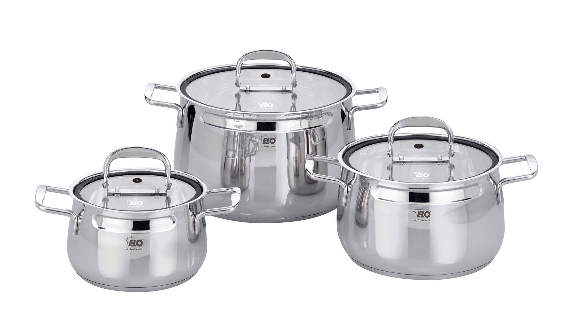 Das ELO® Kochtopf-Set Mystery aus 18/8 und 18/10 Edelstahl findet selbst in der kleinsten Küche problemlos Platz, da es stapelbar ist.