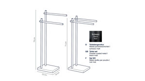 Komplettieren Sie Ihr Badezimmer mit dem eleganten Devin Handtuchhalter, der perfekt zur Devin Toilettengarnitur passt. Dieser mattschwarze Handtuchhalter aus hochwertigem, pulverbeschichtetem Metall bietet zwei Halterungen für Handtücher, die auf gleicher Höhe oder leicht höhenversetzt montiert werden können. Maße ca. 18 x 79 x 36 cm (BxHxT)