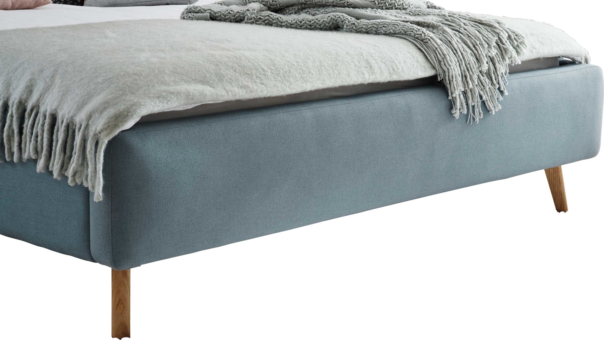 eisblaues Flachgewebe Aspen 84 & Holzfüße - Liegefläche ca. 140 x 200 cm