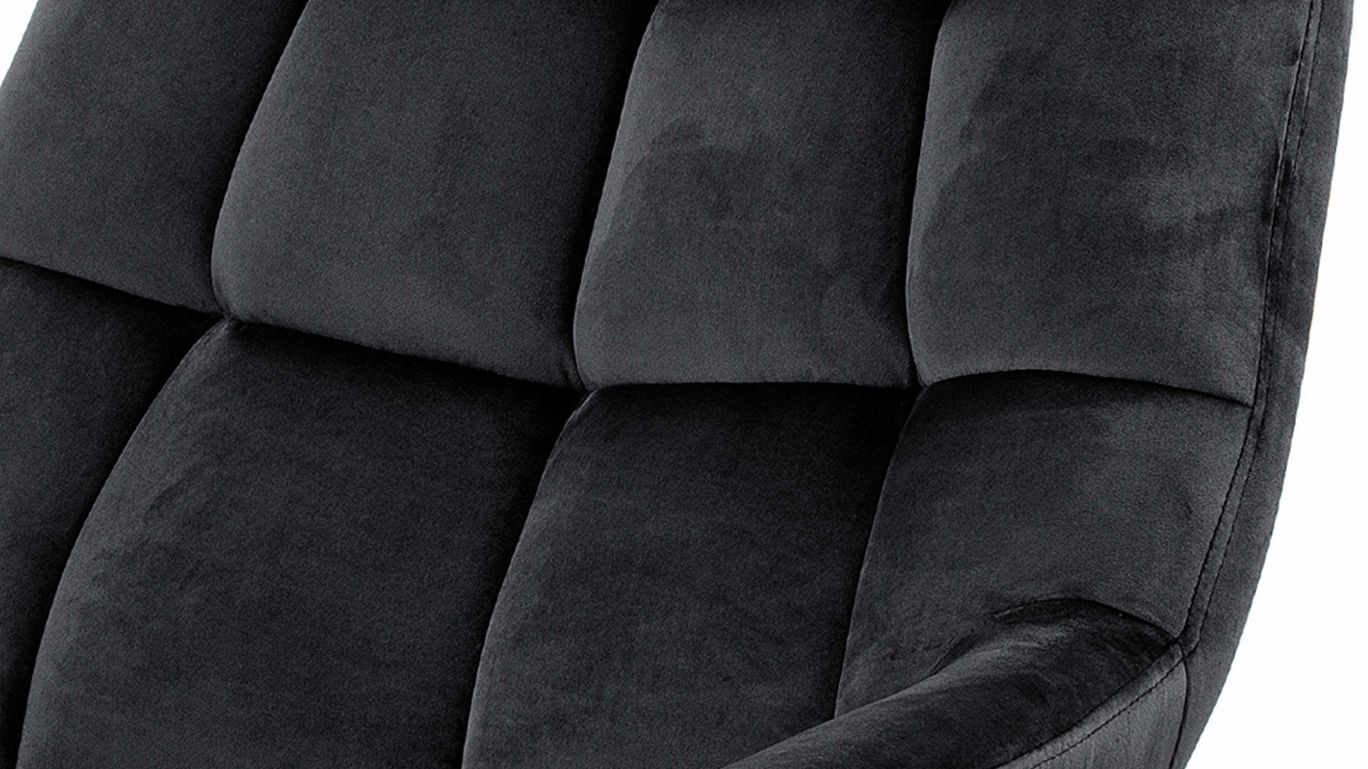 Auch farblich erlaubt der Loungesessel angenehme Freiheit beim Kombinieren: Dafür sorgt der graubraune Samtbezug. Der weiche Stoff umhüllt sowohl die Sitzfläche als auch die gesteppte Rückenlehne inklusive der bequemen Armlehnen herrlich soft. Das rau pulverbeschichtete Metallgestell fließt in sattem Schwarz stimmig in das Gesamtbild ein.