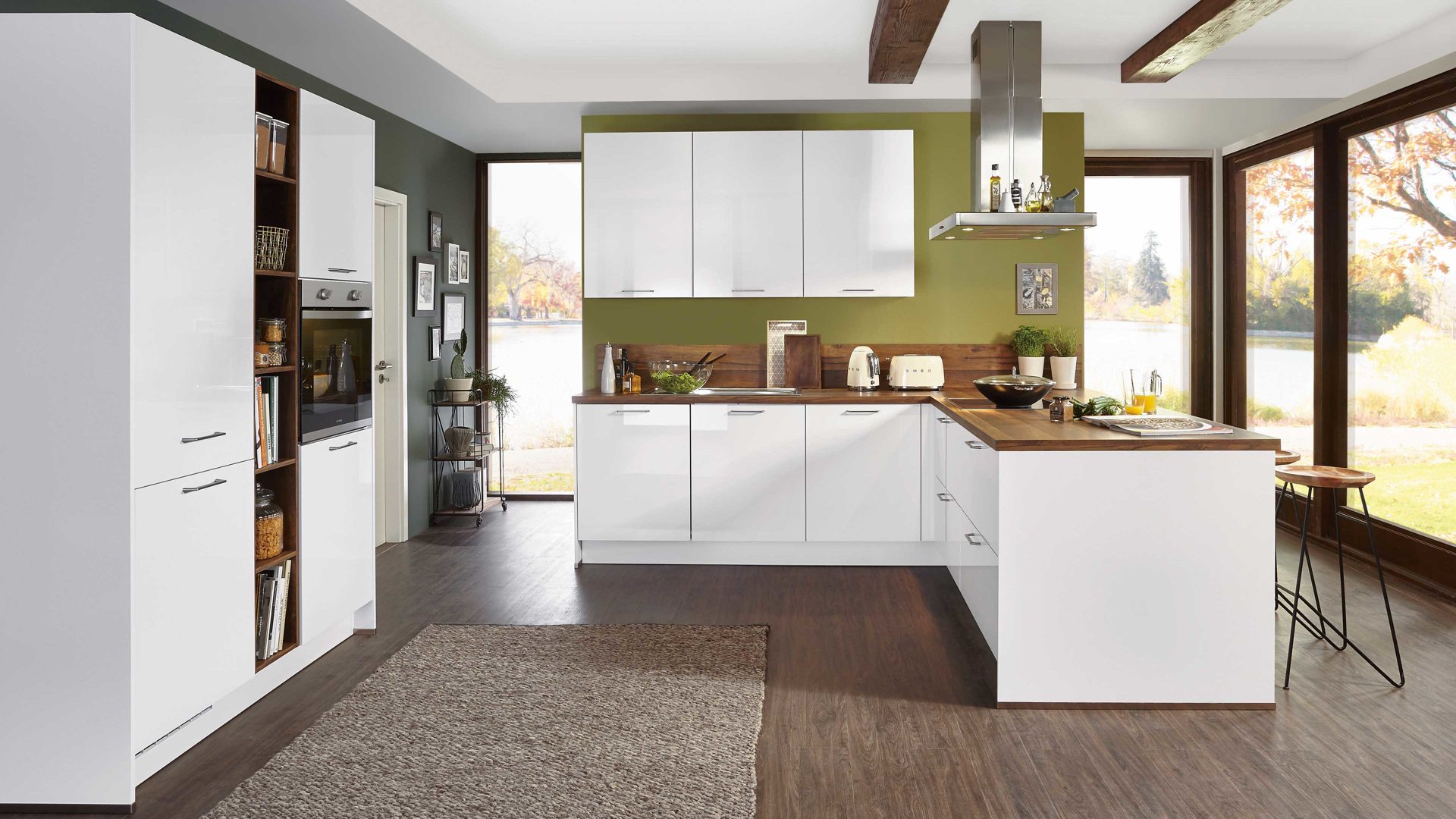 Die nolte® Einbauküche Lux mit Constructa Einbaugeräten kombiniert den puristischen Look arcticweißer Hochglanzfronten mit dem warmen Charme von rustikaler Wildeiche-Nachbildung. Durch die hellen, perfekt aufeinander abgestimmten Farben wirkt die Küche besonders freundlich und einladend. Sie strahlt Eleganz aus und bringt ein natürliches Ambiente in den Raum.