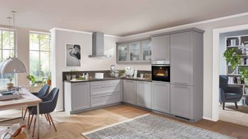 Mit einer Stellfläche bzw. einem Schenkelmaß von ca. 365 x 363 cm (B/LxT, von links nach rechts) bietet die C317 reichlich Arbeitsfläche und Stauraum – ideal für alle, die gerne kochen, genießen und gemeinsam Zeit verbringen. Die Kombination aus offenen Regalelementen und geschlossenen Fronten sorgt für eine klare, strukturierte Optik, die zugleich modern und einladend wirkt.