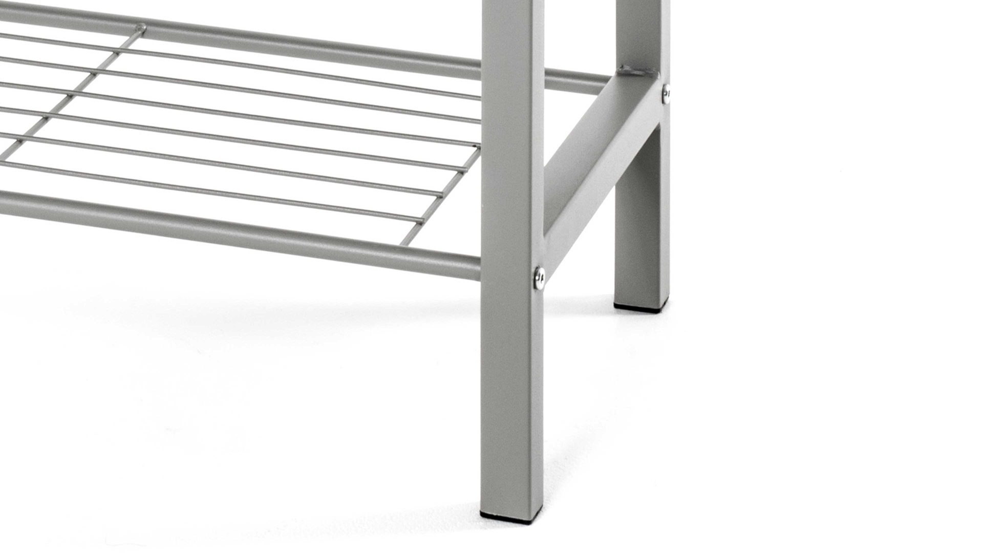 Eine weitere Besonderheit: Das Flurmöbel verfügt über einen stabilen Gitterboden, der als Schuhablage genutzt werden kann. Stiefeletten, Pumps, aber auch Hausschuhe lassen sich dank dieser Garderobenbank ordentlich und griffbereit verstauen. Kombinieren Sie Ihre neue Schuhbank mit einer farblich passenden Wandgarderobe und einer Kombikommode, um zusätzlichen Stauraum zu schaffen. Beachten Sie bitte, dass Sie diese Garderobenbank auch mit einem weißen Sitzpolster bestellen können.
