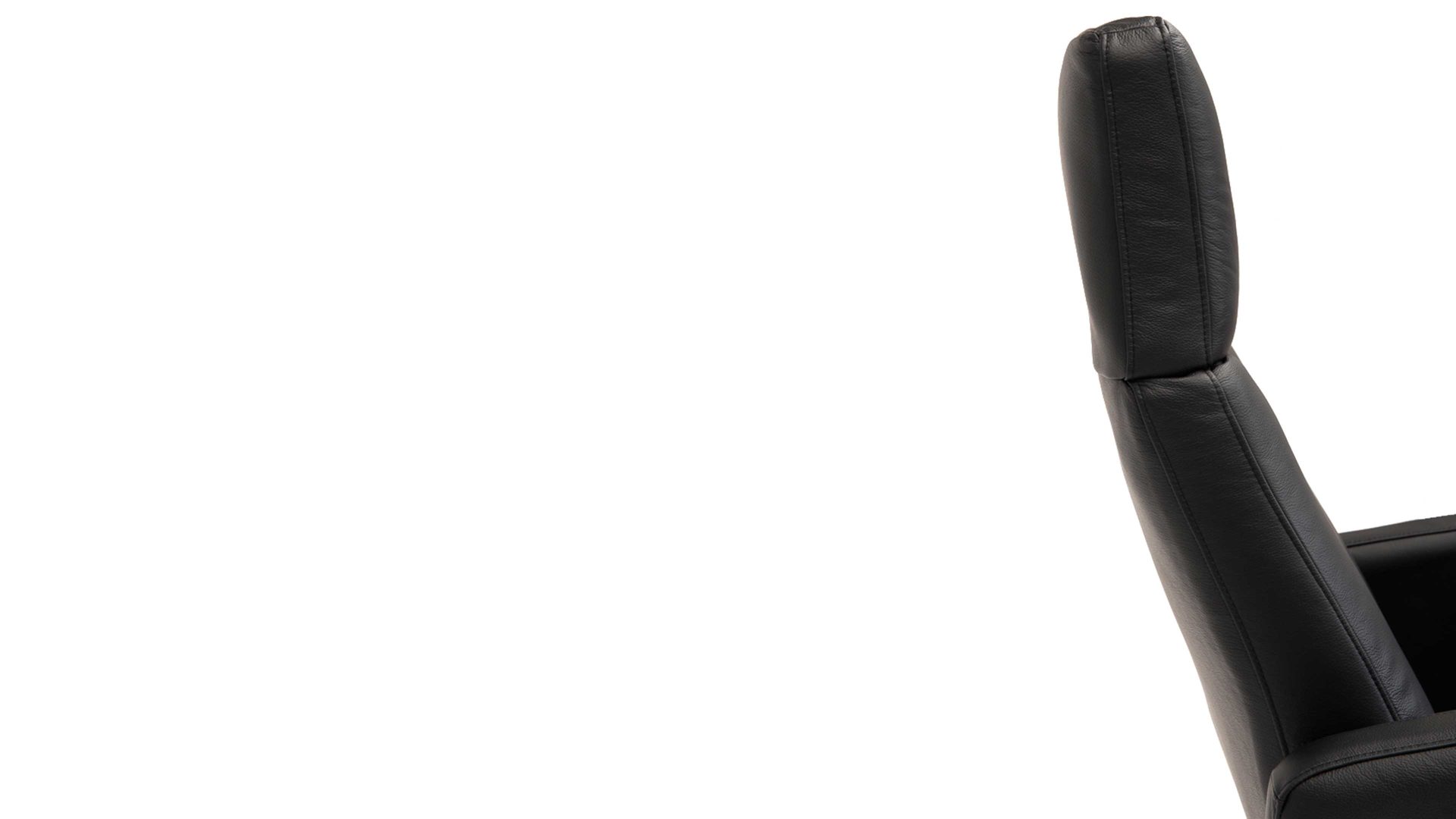 Drehsessel mit getrennten motorische Relaxfunktionen, bedienbar über ein außenliegendes silberfarbenes Control-Panel