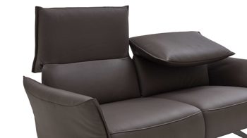 Das Funktionsarmteil der Couch ist durch einen Rasterbeschlag in verschiedenen Positionen verstellbar und bietet somit die Möglichkeit, die Armlehnen individuell an die Bedürfnisse anzupassen. Durch einfaches Ziehen über die höchste Position hinaus kann das Armteil wieder zurück in die Grundposition gebracht werden. Die Breite bei abgeklappter Armlehne vergrößert sich dann um bis zu 12 cm.