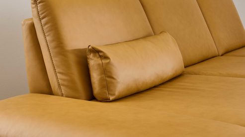 kurkumafarbener Semi-Anilin-Lederbezug mit softem Griff und feiner Lederstruktur