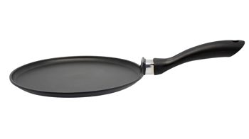 leichter Aluminium-Pfannenkörper für bequemes Wenden und hohem Rand für größere Portionen und sehr guter Wärmeverteilung für ein gleichmäßiges Braten