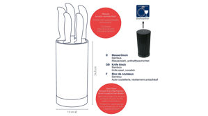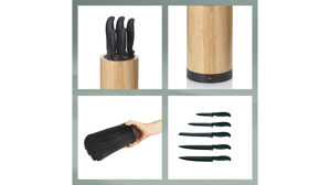 Entdecken Sie die perfekte Kombination aus Funktionalität und Eleganz für deine Küche - unseren Bambus-Messerblock Acida mit fünf hochwertigen Messern aus Edelstahl! Aus robustem Bambusholz und mit einem praktischen schwarzen Einsatz für einfaches Einsetzen und Entnehmen der Messer ausgestattet, ist dieser Block die ideale Aufbewahrungslösung für die Küchenwerkzeuge. Mit einem vielseitigen Set von Küchenmesser bis Chefmesser ist man bestens gerüstet, um die Kochkünste zu perfektionieren. Maße ca. 13 x 23 cm (DxH) mit 1 x Chefmesser ca. 32 cm (L), 1 x Fleischmesser ca. 32 cm (L), 1 x Brotmesser ca. 32 cm (L), 1 x Ausbeinmesser ca. 24 cm (L), 1 x Küchenmesser ca. 20 cm (L)