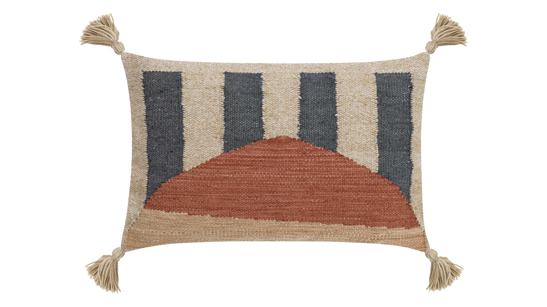 Vorderseite in Blau, Terracotta und Cremeweiß gemustert, 100 % Polyester