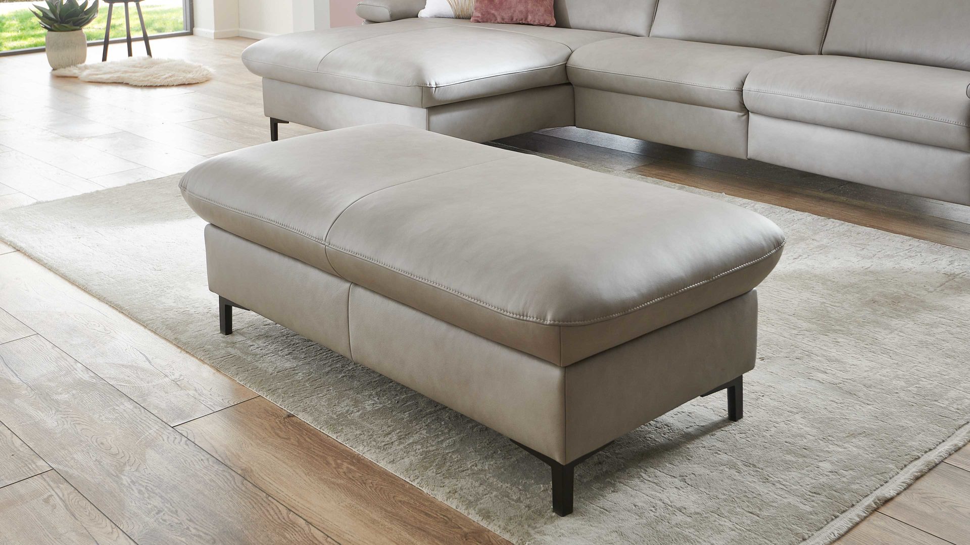 alufarbenes Leder Torro & schwarze Winkelfüße - Stellfläche ca. 166 x 311 cm