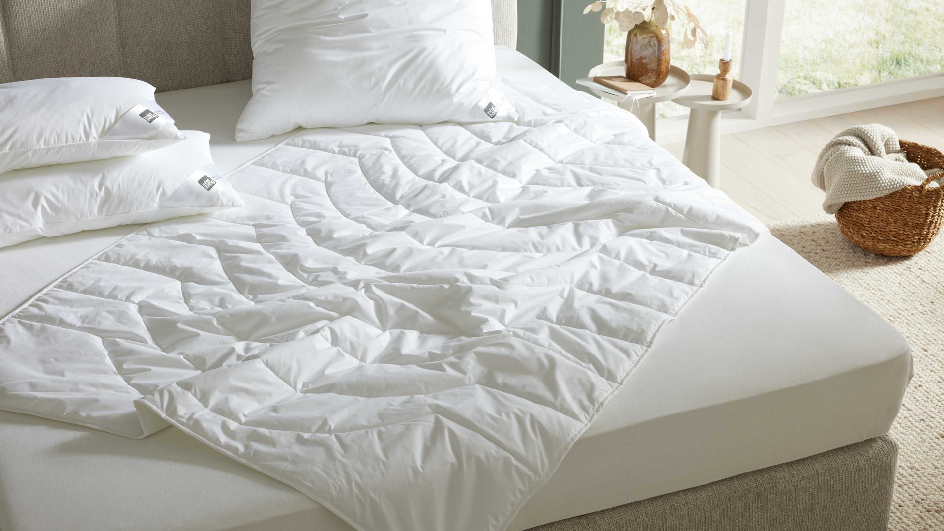 Die extraleichte Ausführung ist genau richtig bei hohen Temperaturen. Der feine Bezug aus weißem Baumwoll-Batist fühlt sich wunderbar weich an, während die leichte Steppung dafür sorgt, dass sich die Decke optimal an deinen Körper anschmiegt. Die Füllung aus ca. 500 g hochbauschiger 3D-Hohlfaser sorgt für ein kuscheliges Volumen – mit ca. 155 x 220 cm (BxL) genau in der richtigen Größe für erholsame Nächte.