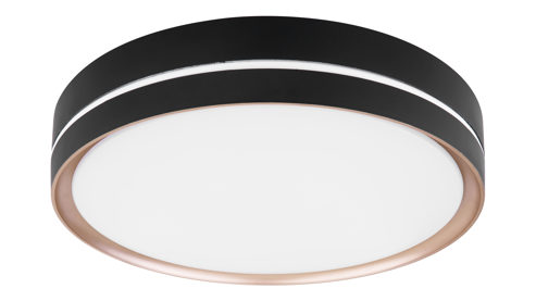 mattschwarzes Metall, kombiniert mit bronzefarbenem Metall und opalfarbenem Kunststoff
