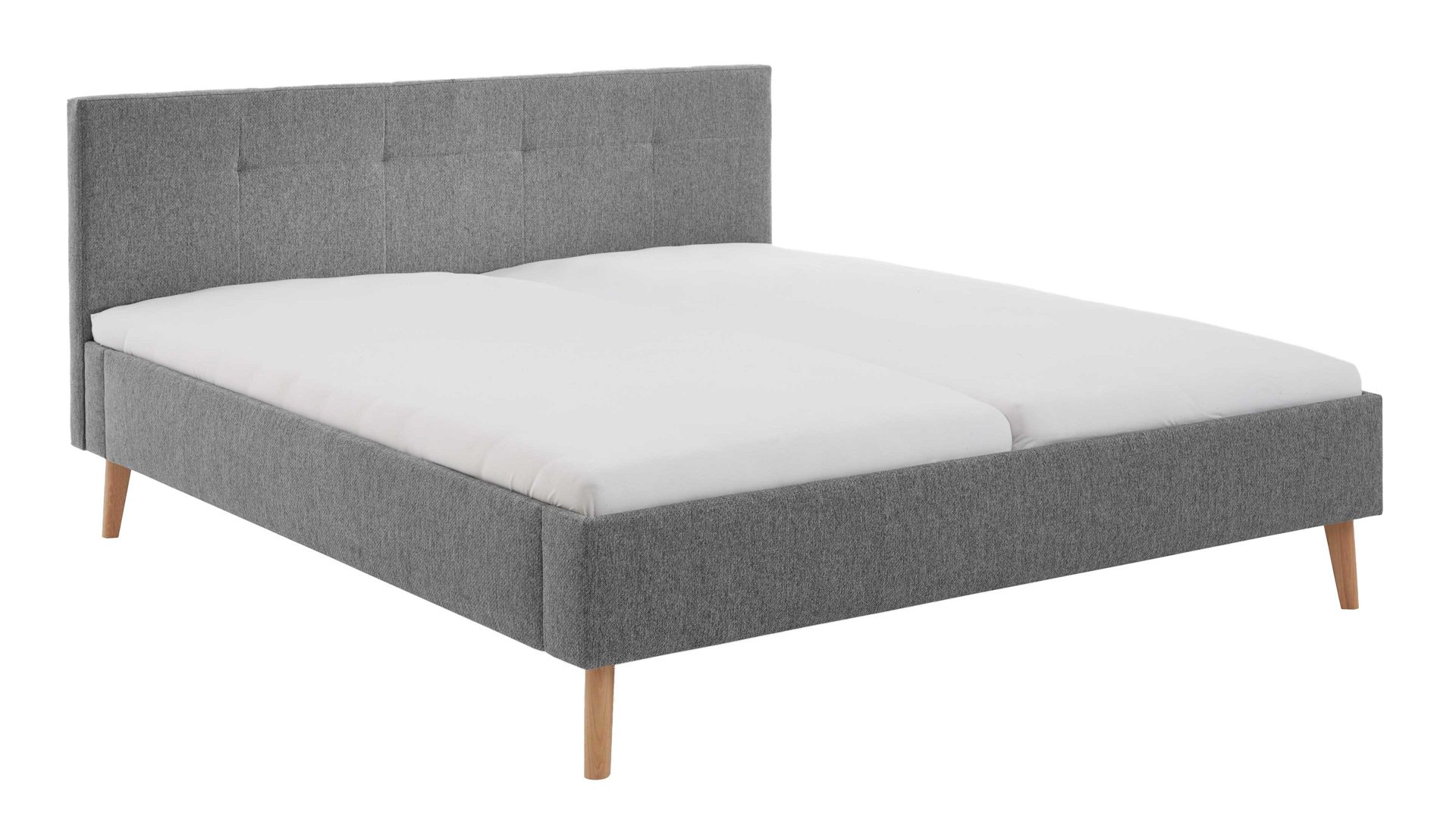 Das Polsterbettgestell Jazz ist gemütlich und stilvoll designt. Mit dem edlen grauen Stoffbezug und den eichefarbenen Holzfüßen strahlt es Eleganz mit einer Prise Natürlichkeit aus. Zu den Höhepunkten gehört das gesteppte Polsterkopfteil. Es verleiht dem Bett das gewisse optische Etwas und gibt Ihnen beim Lesen oder Fernsehen eine bequeme Anlehnmöglichkeit. Die Bettseiten sind glatt bezogen.