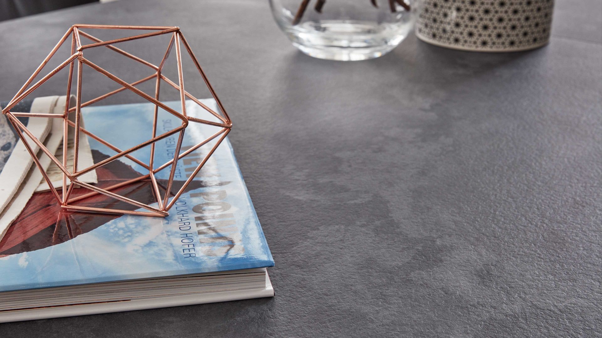 Die HPL-Tischplatte mit Melaminoberfläche punktet mit hervorragender Alltagstauglichkeit: