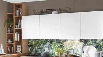 Die nobilia® Einbauküche Easytouch kombiniert die klassische Eleganz von ultramattem Alpinweiß mit Details in Eiche Sierra-Nachbildung für natürliche, warme Akzente.