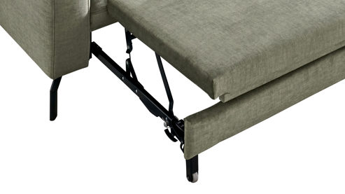Die Schlaffunktion ist ein praktisches und komfortables Mehrpreis-Extra für den Dreisitzer mit einer Armlehne aus der attraktiven Polsterserie VS-MP1154. Indem Sie die Sitzfläche über den edlen verchromten Metallgriff leicht nach oben und vorne ausziehen, erweitern Sie die Sitzfläche auf ca. 220 x 135 cm (BxL).