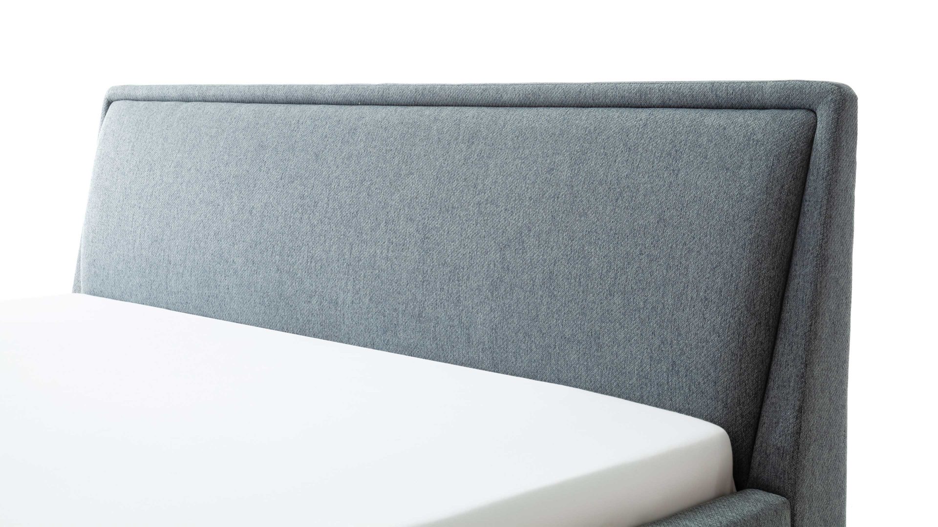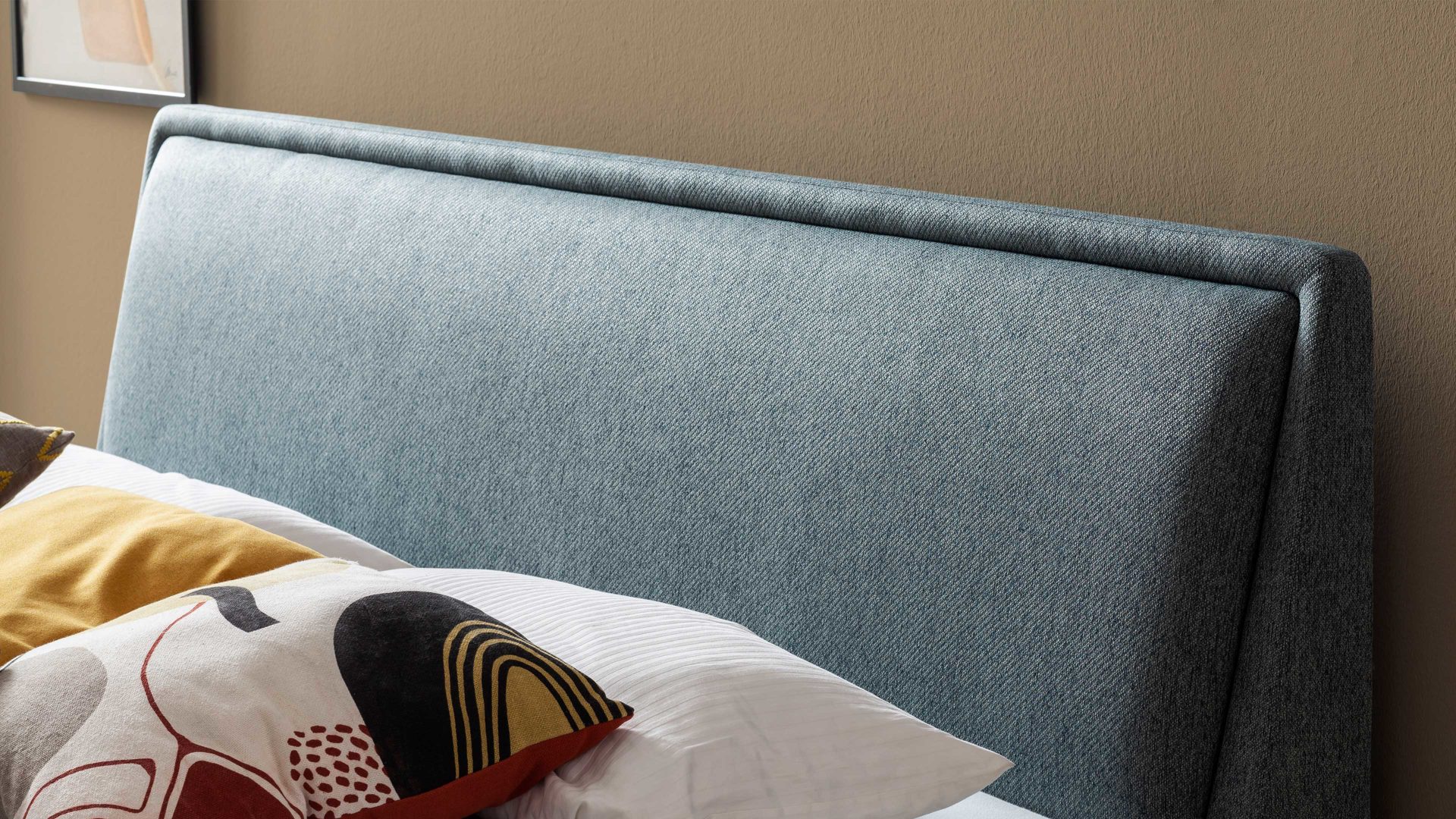 Das Polsterbettgestell Frieda mit Bettkasten verkörpert modernen Komfort. Mit dem oceanfarbenen Stoffbezug und den schwarzen Holzfüßen präsentiert es sich elegant und gemütlich designt. Die Bettseiten sind genauso wie das Polsterkopfteil glatt bezogen. Letzteres ist eine angenehm weiche Rückenlehne, wenn Sie abends im Bett vor dem Schlafen noch entspannt in Ihrem Buch lesen oder fernsehen möchten.
