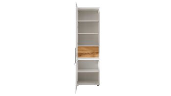 Die eintürige Vitrine 5290-3711L misst ca. 62 x 207 x 43 cm (BxHxT). Auf ca. 182 x 55 x 53 cm (BxHxT) belaufen sich die Maße des Lowboards 5234-3711R mit einer Tür und einer Schublade. Ca. 62 x 139 x 33 cm (BxHxT) ist die eintürige Hängevitrine 5247-3711R groß. Das Gesamtmaß der Wohnwand beläuft sich auf ca. 303 x 207 x 53 cm (BxHxT). Sie bietet Ihnen viel praktischen und stilvollen Stauraum für Gegenstände, die Sie licht- und staubgeschützt aufbewahren oder gelungen in Szene setzen wollen. Alle drei Wohnmöbel werden Ihnen bereits fertig montiert geliefert. Als optionales Zubehör fungieren stimmungsvolle LED-Beleuchtungen sowie beim Lowboard auch ein Kabeldurchlass und ein Untergestell.