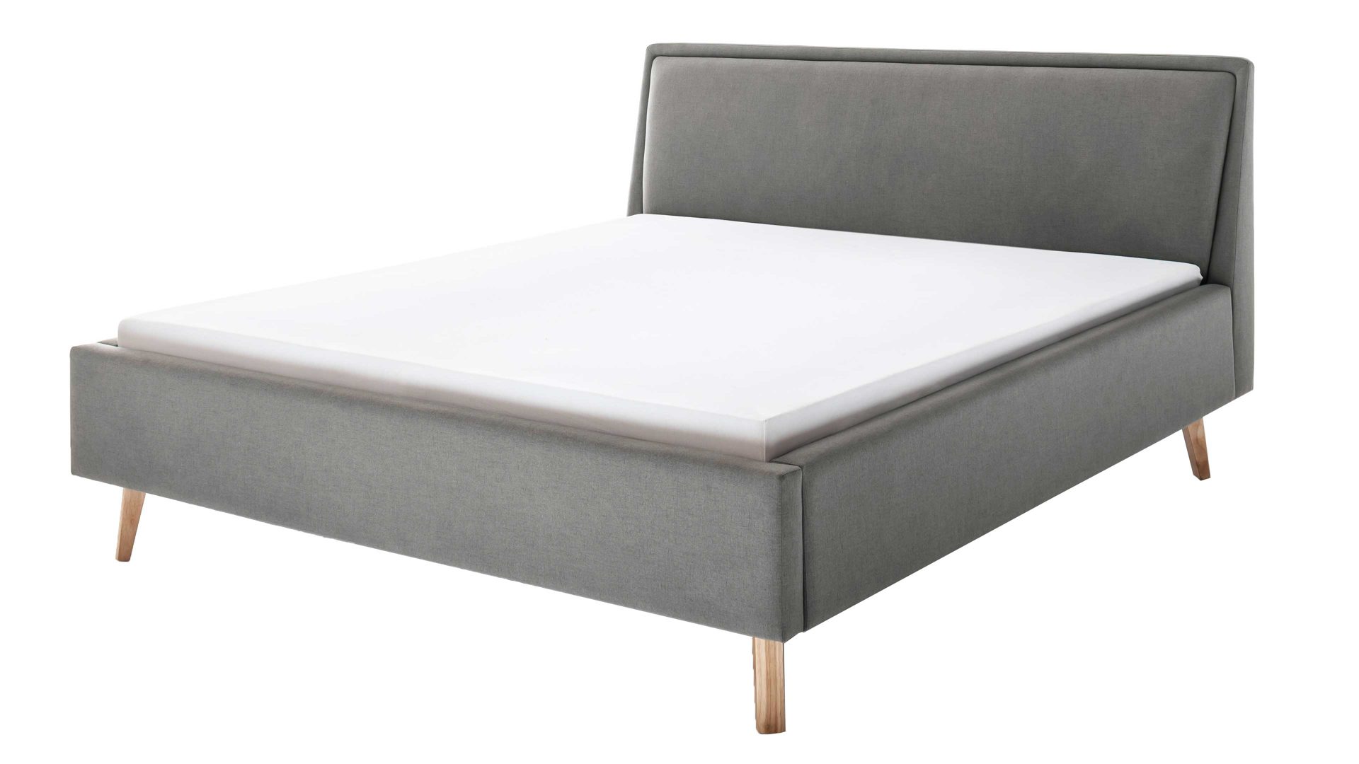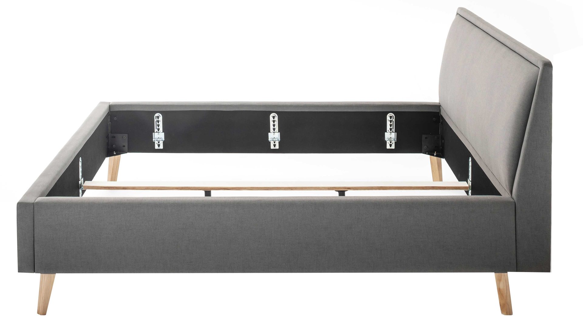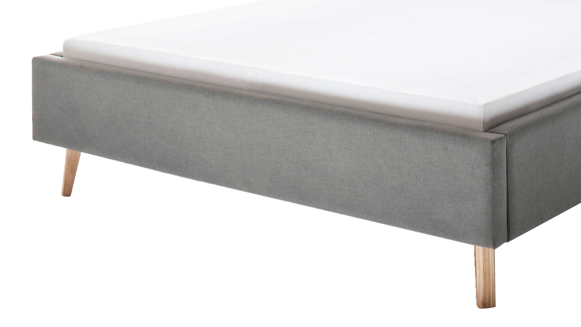 Das Polsterbettgestell Frieda mit Bettkasten verkörpert modernen Komfort. Mit dem hellgrauen Stoffbezug und den eichefarbenen Holzfüßen präsentiert es sich elegant und gemütlich designt. Die Bettseiten sind genauso wie das Polsterkopfteil glatt bezogen. Letzteres ist eine angenehm weiche Rückenlehne, wenn Sie abends im Bett vor dem Schlafen noch entspannt in Ihrem Buch lesen oder fernsehen möchten.